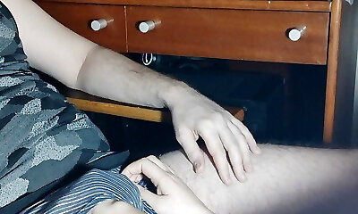 Alyona played with her spouse's cock and got cum on her fingers