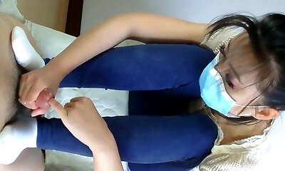 Chinese teen footjob and handjob