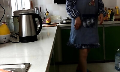 Pervert Japanese wife spanked in kitchen