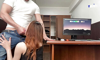 rosy-haired schoolgirl unbelievable blowjob takes the sperm on the face